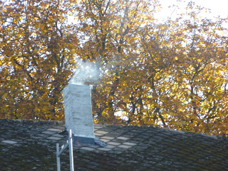 Zondag blijkt nog mooier dan zaterdag, erg mooi hoe hier de zon opkomt, helaas nog steeds niet in een foto kunnen vastleggen. En het is zo stil hier, dat je de blaadjes hoort vallen als een soort van regendruppen. De herfst is schitterend hier, en Stephan weet precies welke paddestoelen je kan eten, volgende keer maar naar het bos.